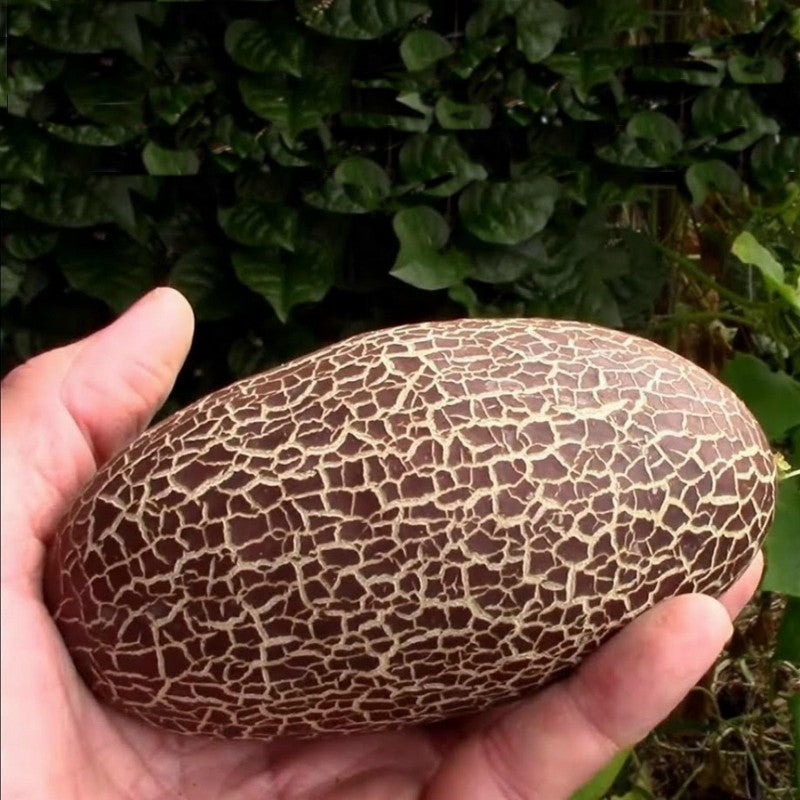 This is a huge, fat, ugly cucumber with crackled brown skin, but its absolutely delicious, super crispy, and a conversation starter. The cukes if left on the vine can get to be a foot long and weigh several pounds. I have grown this variety for over a decade.