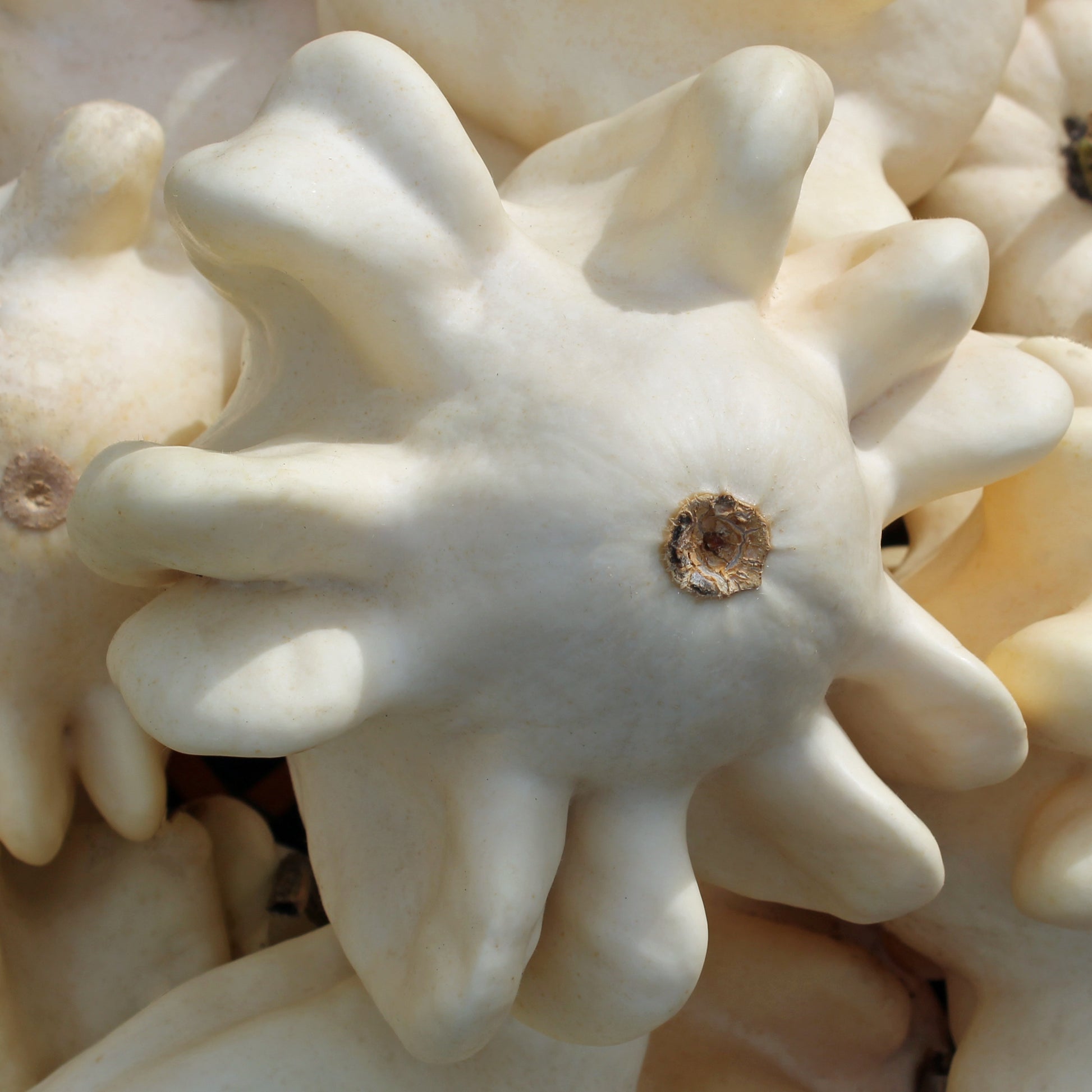 This squash originates from Yugoslavia and is one of the most unique and semi-rare squash. This white squash has 8-10 fingers that start at the base and extend out the top. This squash grows in a bush-like fashion, similar to a patty-pan.