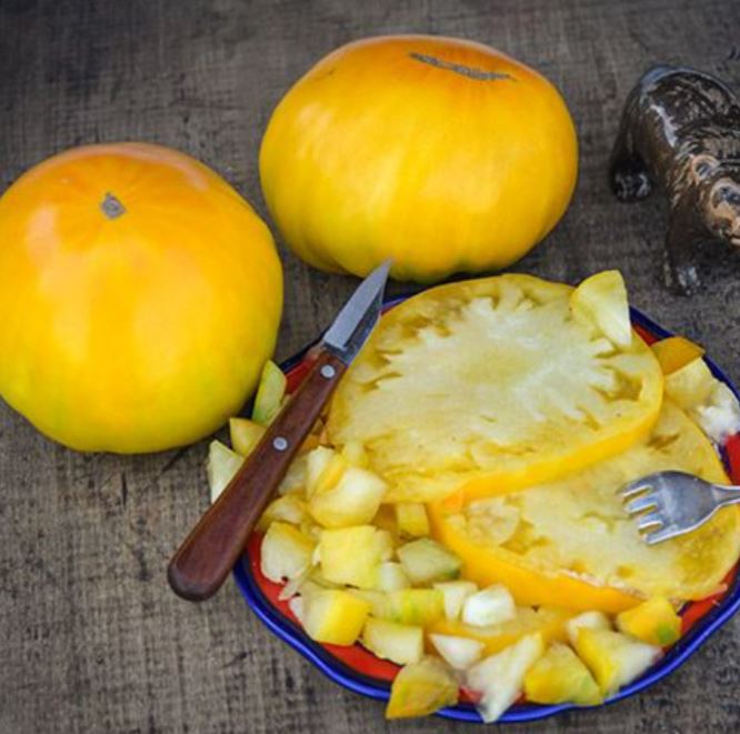 I've grown this several years now. These produce some of the largest tomatoes, many over a pound. Sweet, very few seeds. This variety is originally from Siberia. Harvest starts 85 days after transplant.